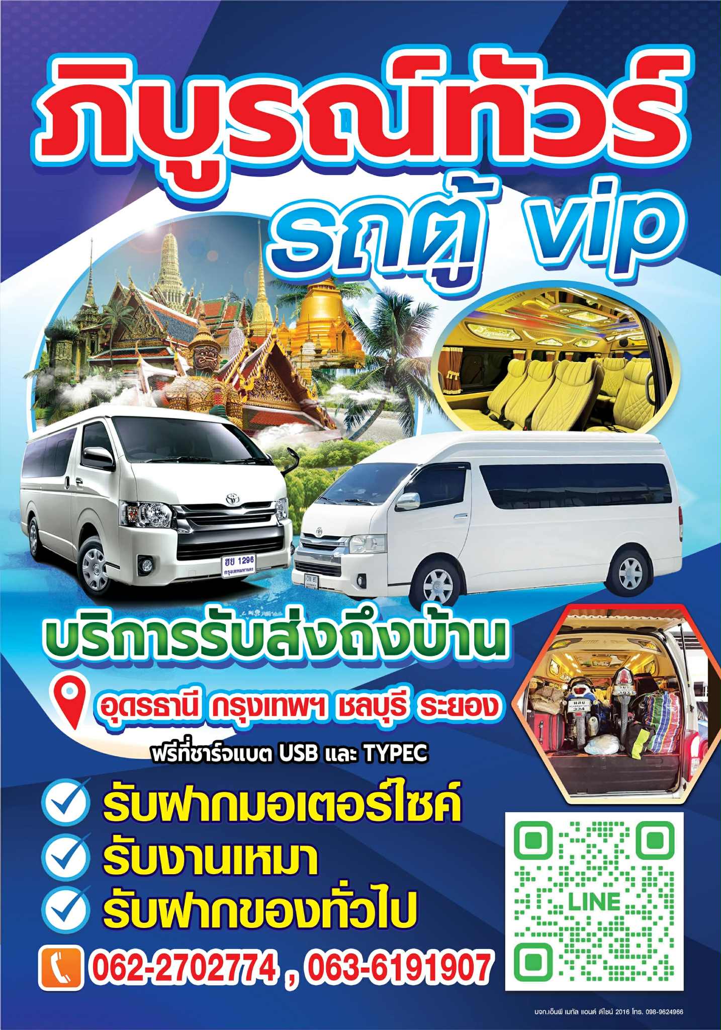 ภิบูรณ์ทัวร์รถตู้ VIP รับ-ส่งถึงหน้าบ้าน (Door to Door) ครอบคลุม อุดรธานี กรุงเทพฯ ชลบุรี ระยอง พร้อมบริการฝากส่งพัสดุและมอเตอร์ไซค์ สะดวก ปลอดภัย ไว้ใจภิบูรณ์ทัวร์